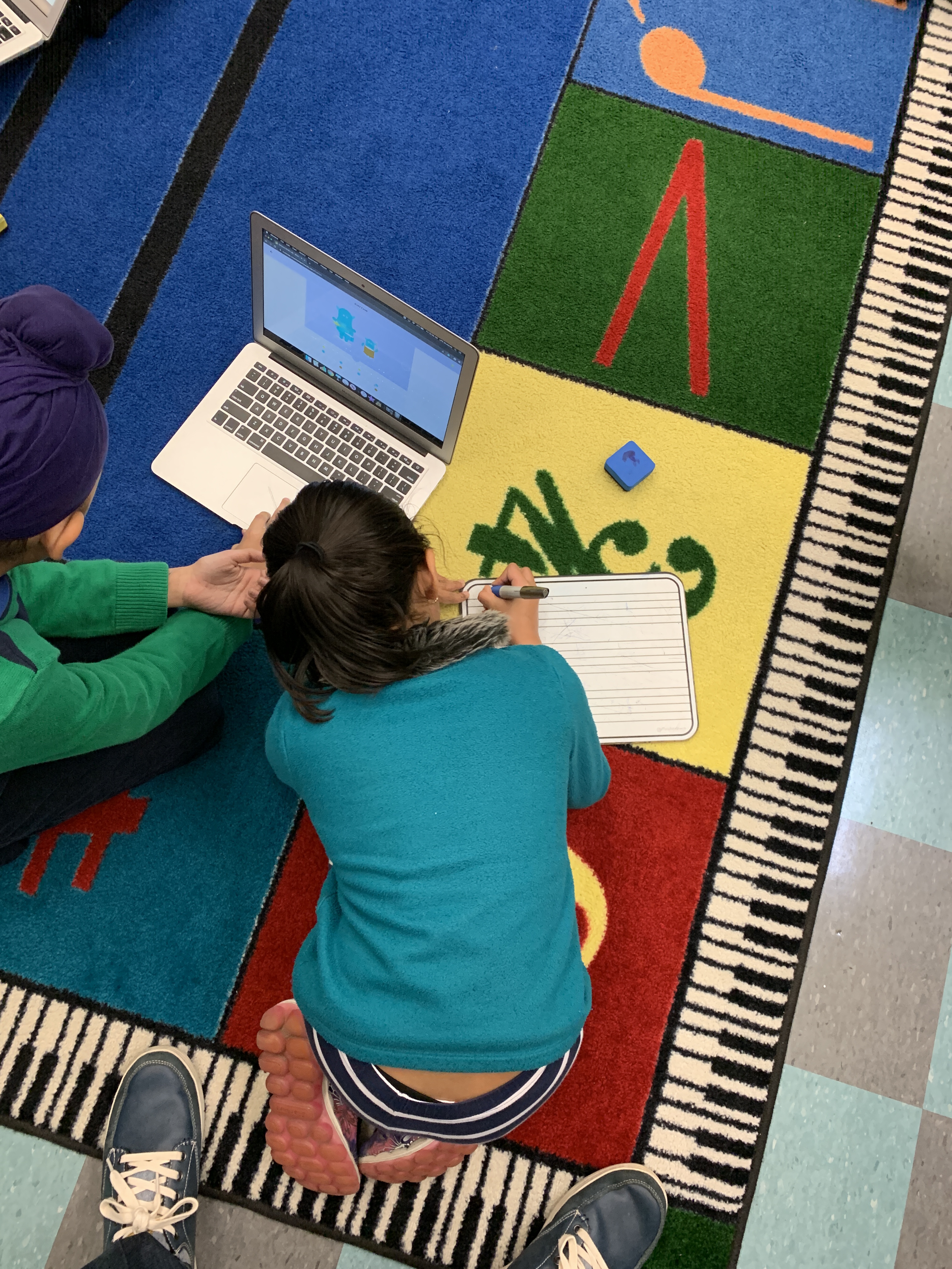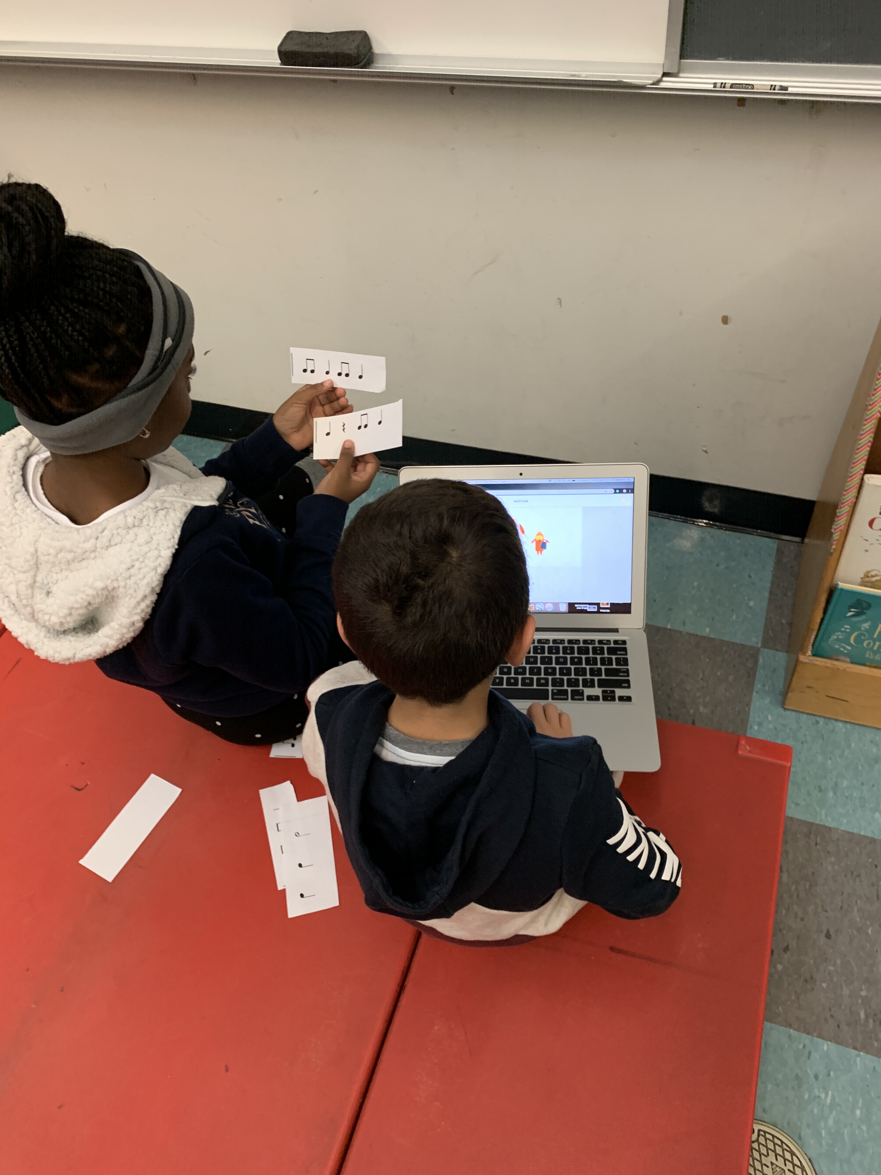 First graders use Chrome music lab rhythm maker to recreate simple rhythm patterns on the application. Students work in pairs. One partner claps the simple rhythm of 3, 4, 5, or 6 beats. Students have to identify how many beats they clapped, move to the correct screen that has that many beats on the application and then recreate the rhythm using the app. Students get to hear whether they clapped the rhythm correctly and can check each others work. It’s a great way to give students lots of exposure in a shorter amount of time than using whole group instruction.