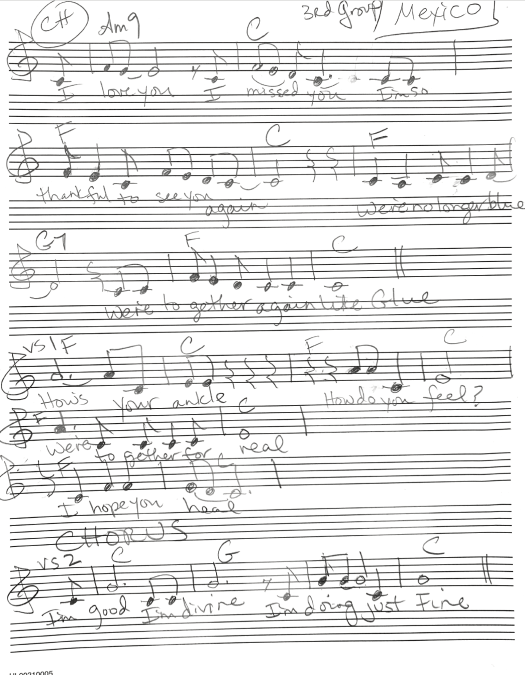 - Using a process of natural inflection and experimentation, students created the sections of the song.